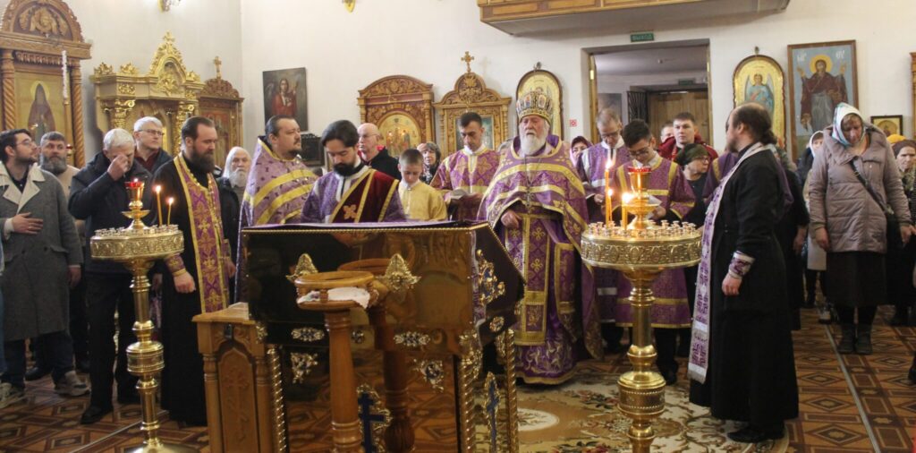 Позднюю Божественную литургию в Екатерининском храме в первое воскресенье Великого поста возглавил настоятель протоиерей Николай Денисенко в сослужении иерея Владислава Майорова, диакона Павла Алешкова, духовенства и клира прихода.