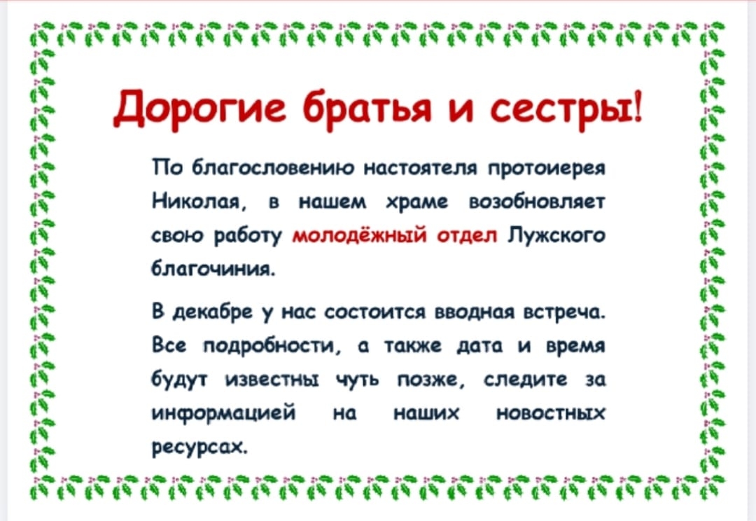 - Расписание богослужений