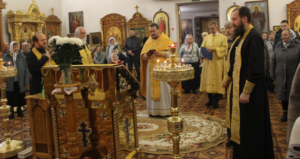 Субботнюю литургию в Екатерининском храме возглавил иерей Владислав Майоров.