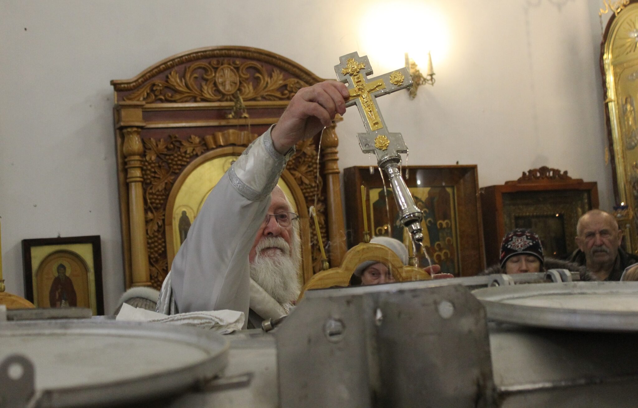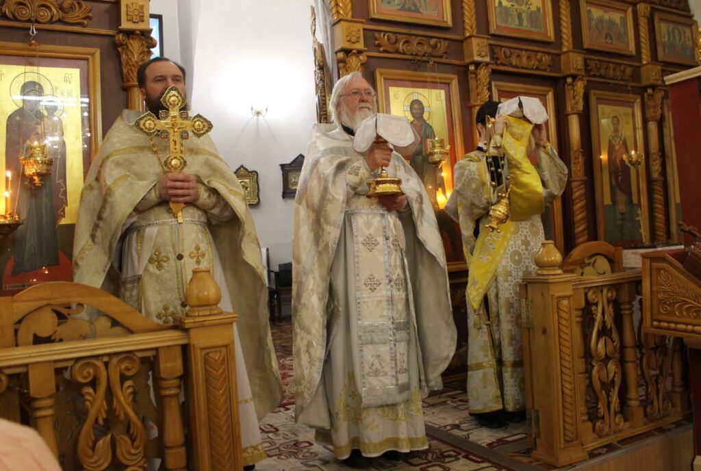 Утреннюю службу в Екатерининском храме возглавил протоиерей Николай Денисенко. Предпразднство праздника Крещения Господня включает Навечерие Богоявления Господня. Ввиду важности совершившегося в наступающий день события в жизни Иисуса Христа, Церковь установила в этот день пост. Меру поста верующие определяют индивидуально, по силам и благословению духовника. В этот день, как и в Рождественский сочельник, не вкушают пищу до выноса свечи после Литургии утром и первого причащения крещенской воды. Перед великим освящением воды служится Великая вечерня, вспоминающая библейские тексты, связанные с водой и самой известной рекой Иордан.