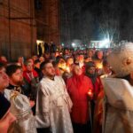 В полночь лампадки, свечи и фонарики освятили храм…