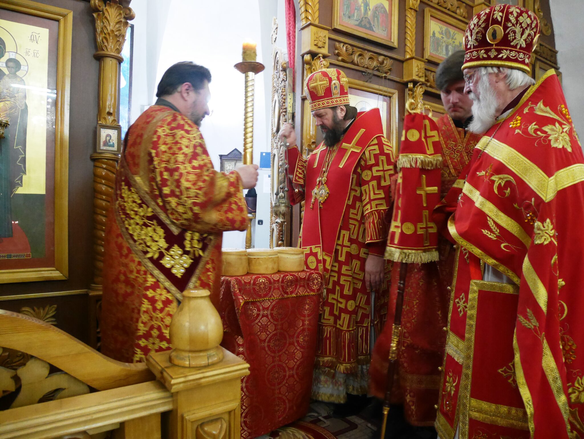 После заамвонной молитвы преосвященнейший Владыка Митрофан совершил чин освящения артоса.